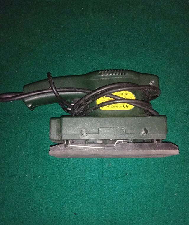Lijadora orbital medida plato 187 x 90 fijacion de lijas por presillas de pinza , salida para aspiracion , potencia 140 w , sin uso .