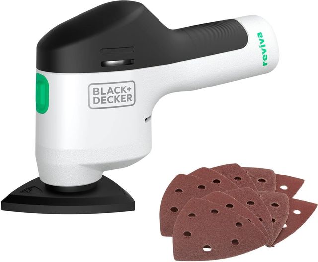 Lijadora inalámbrica BLACK+DECKER de 12V, ideal para trabajos de lijado. - Incluye 10 lijas. - Diseño ergonómico para un mejor agarre.