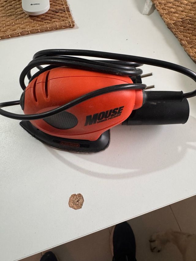 Lijadora compacta Black+Decker, modelo Mouse. - Diseño ergonómico para un agarre cómodo. - Ideal para trabajos de lijado y pulido en espacios reducidos.