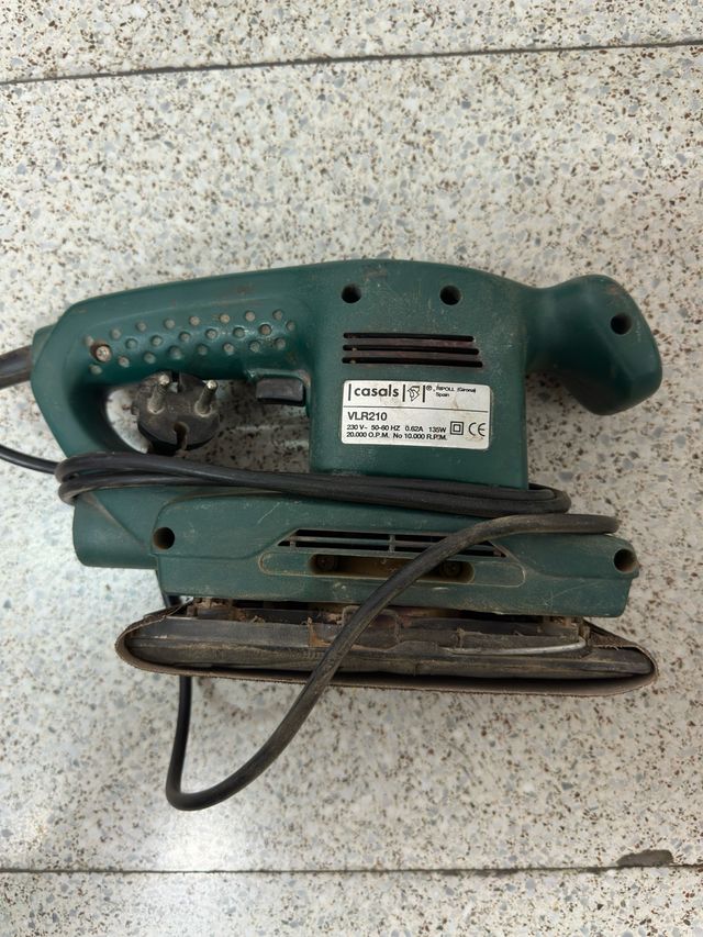Lijadora eléctrica Casals VLR210. - Modelo VLR210. - Voltaje: 230 V. - Frecuencia: 50-60 Hz. - Potencia: 130 W. - Velocidad: 20.000 O.P.M. - Fabricada en España.