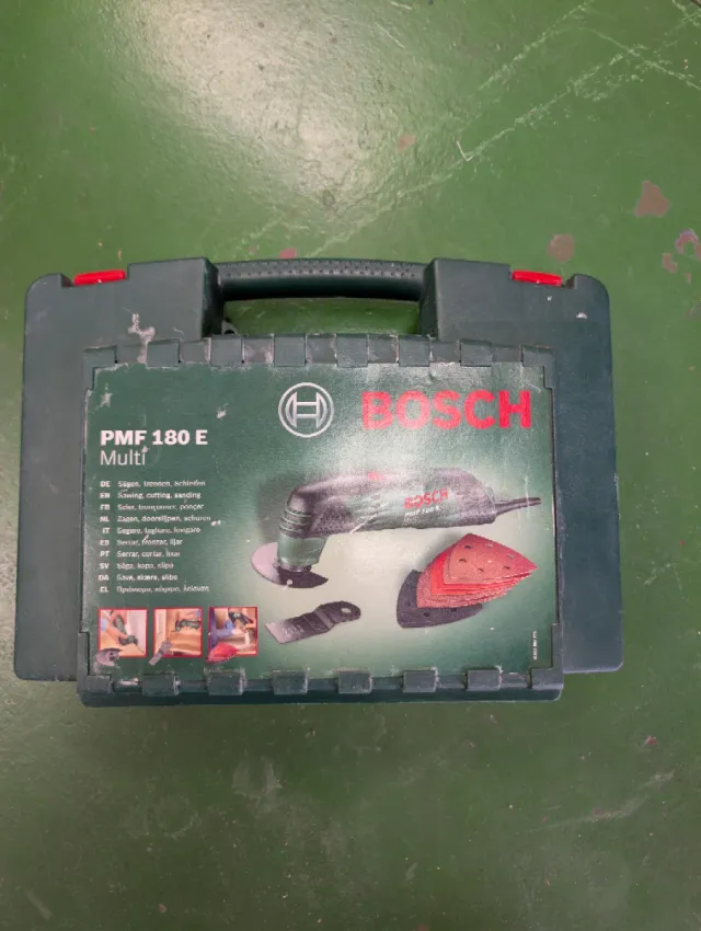 Herramienta multifunción Bosch PMF 180 E. - Ideal para serrar, cortar y lijar. - Incluye accesorios para diferentes tareas.