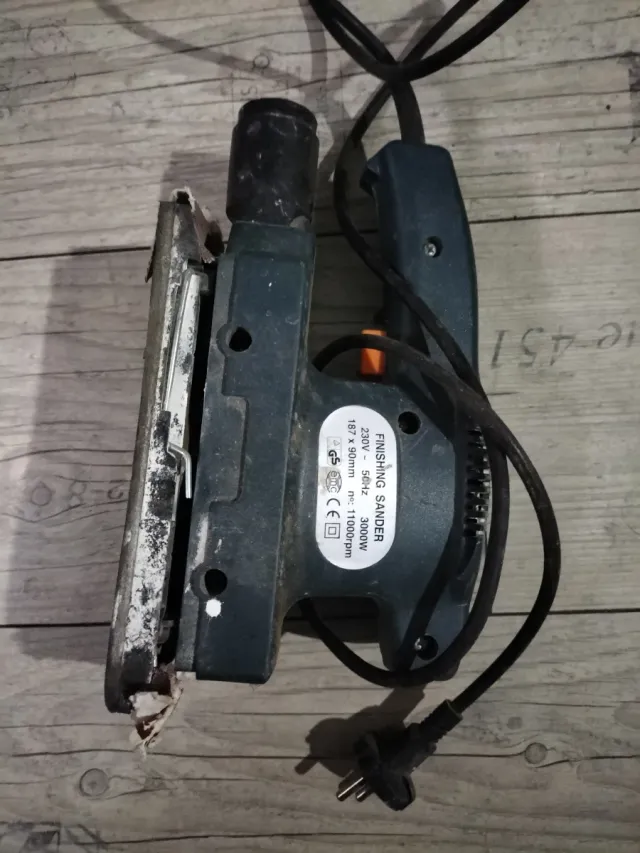 Lijadora de acabado con motor de 300W. - Voltaje: 230V - Frecuencia: 50Hz - Velocidad: 11000 rpm - Tamaño de la base: 187 x 90mm