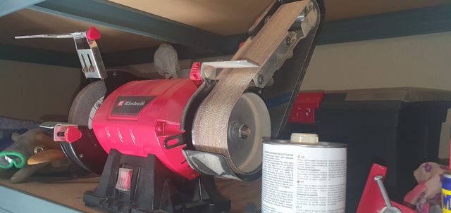 Lijadora de banda de la marca Einhell, ideal para trabajos de lijado. - Color rojo. - Diseño compacto.