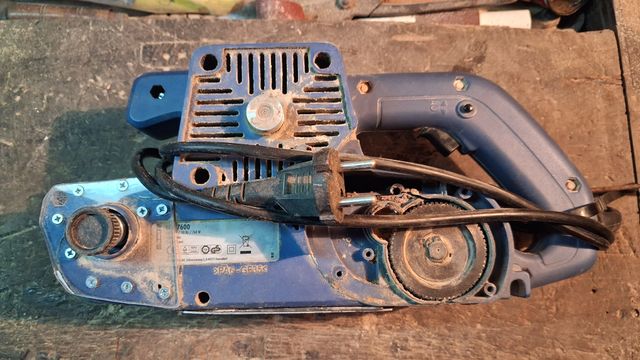Lijadora de banda para piezas. Ideal para reparar o aprovechar componentes. - Carcasa de plástico azul. - Cable de alimentación incluido. - Mando de ajuste visible.