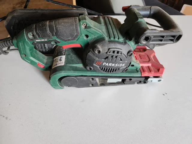 Lijadora de banda Parkside. - Modelo PBSD 900 A2. - Empuñadura adicional. - Incluye bolsa para el polvo.