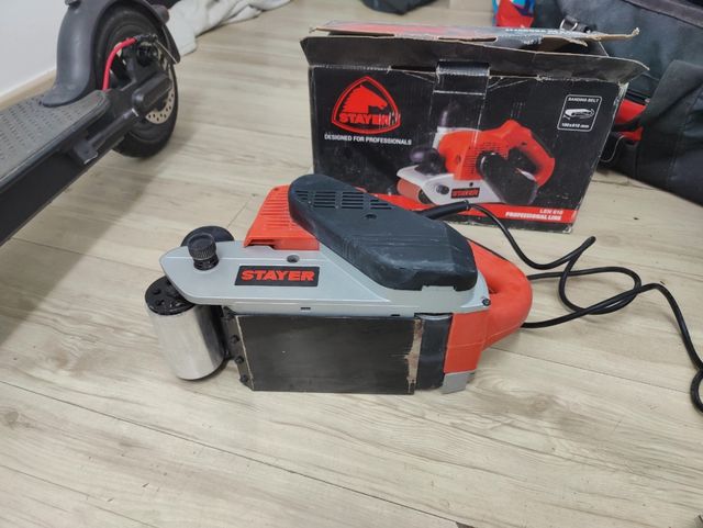 Detalles del productoLijadora eléctrica de banda Stayer, ideal para trabajos de lijado. Se uso una vez, está como nueva tiene su bolsa para polvo incluida.