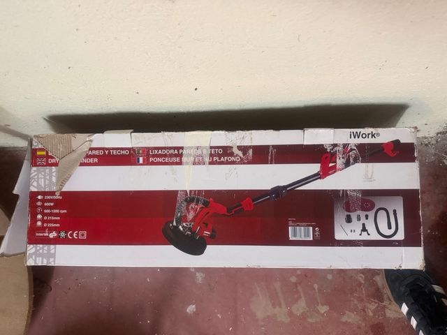 Detalles del productoLijadora eléctrica iWork para paredes y techos. Ideal para trabajos de bricolaje y renovación.