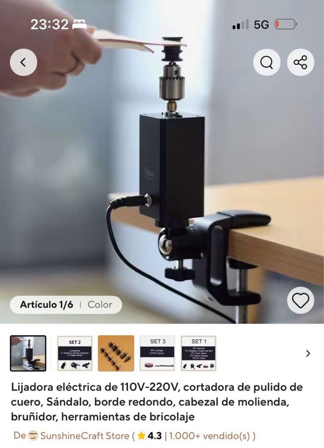 Detalles del productoLijadora eléctrica para pulir cuero y otros materiales.