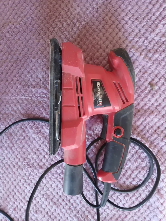 Lijadora eléctrica Einhell en color rojo y negro. Ideal para trabajos de lijado. - Diseño ergonómico. - Cable de alimentación incluido.