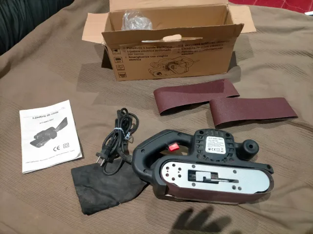 Detalles del productoLijadora eléctrica Practyl de cinta, modelo S1T-SW3-76A1, ideal para trabajos de lijado.