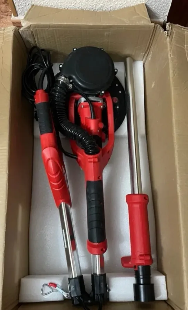 Detalles del productoLijadora eléctrica tipo jirafa, ideal para trabajos en paredes y techos. Su diseño permite alcanzar zonas altas con facilidad.