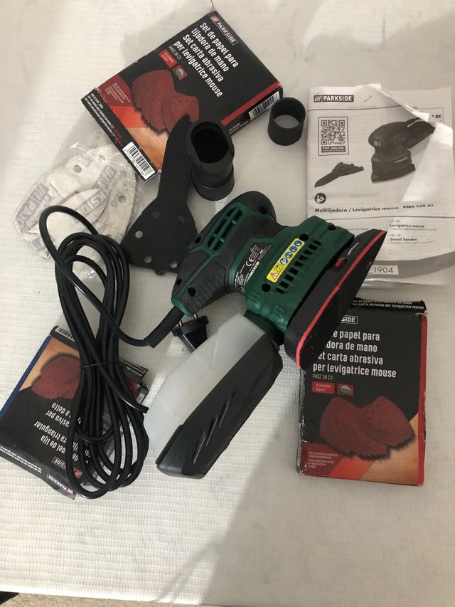 Detalles del productoLijadora orbital Parkside PMS 160 A1, ideal para trabajos de detalle. Incluye accesorios.