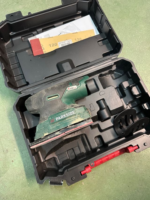 Detalles del productoSe vende lijadora orbital Parkside de 12V, ideal para trabajos de bricolaje y manualidades. Incluye su maletín original para un fácil transporte y almacenamiento.
