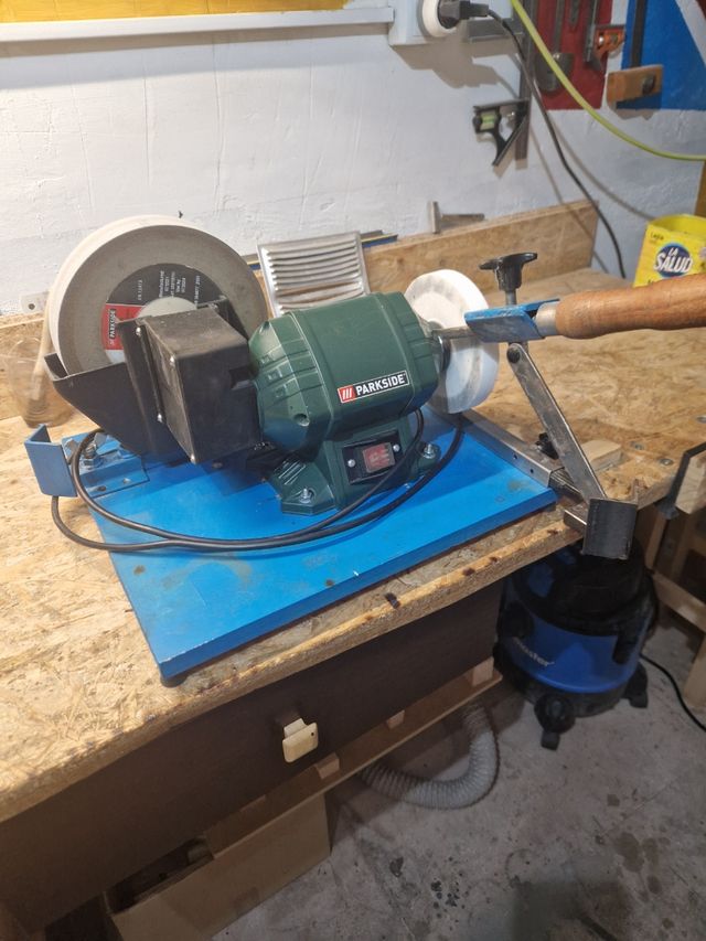 Detalles del productoLijadora combinada Parkside para trabajos en húmedo y en seco. Ideal para mantener tus herramientas afiladas. Acoplamiento para gubias.