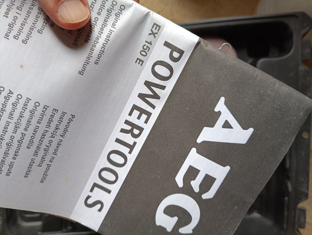 Lijadora rotorbital de 150mm de la marca AEG. - Modelo EX 150 E. - Incluye manual de instrucciones original. Incluye algunos discos de regalo