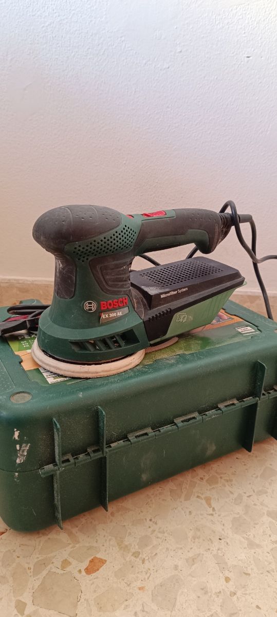 Detalles del productoLijadora orbital de la marca Bosch, modelo PEX 300 AE.