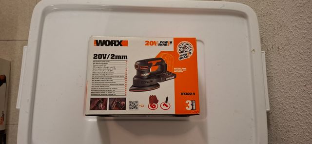 Lijadora orbital de la marca WORX, modelo WX822.9. - Sistema PowerShare de 20V. - Diseño ergonómico. - Batería y cargador no incluidos. Usada 2 veces