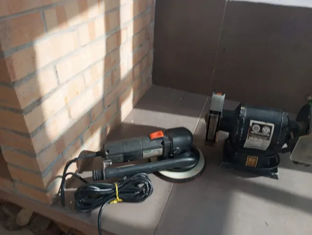 Se venden lijadora y pulidora eléctrica, junto con una lijadora de banco. - Lijadora y pulidora con cable. - Lijadora de banco negra.
