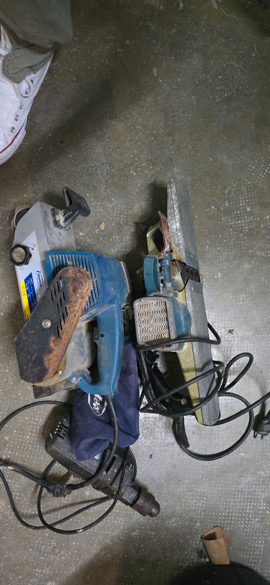 Herramientas eléctricas para trabajos manuales. - Lijadora con bolsa para polvo. - Taladro con cable.