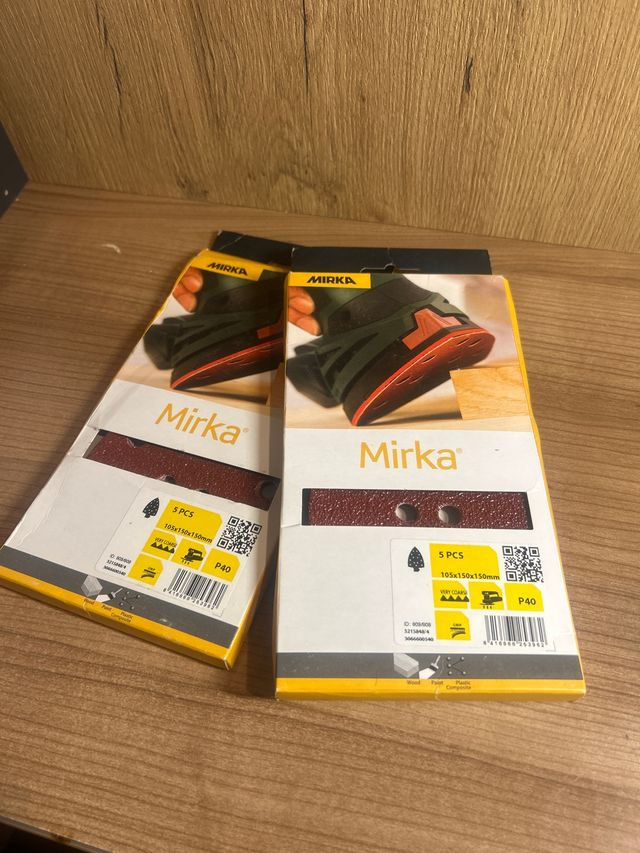 Pack de 5 lijas Mirka para lijadora. - Precio por paquete - Grano P40. - Medidas: 105x150mm. - Para madera, pintura y composite.