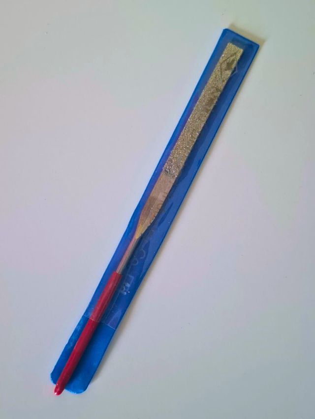 Pequeña lima de mano Nikko Diamond. Para trabajos de precisión. - Lima con recubrimiento de diamante electropositado de 5mm de anchura. - Mango de goma de color rojo.