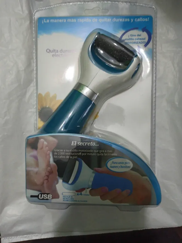 Detalles del productoLima eléctrica para eliminar durezas y callos de los pies de forma rápida y sencilla. El cabezal motorizado gira a más de 2.000 revoluciones por minuto.