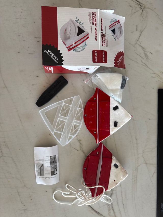 Detalles del productoLimpiador magnético de ventanas edinhome, ideal para limpiar ventanas de doble acristalamiento. Está prácticamente nuevo.