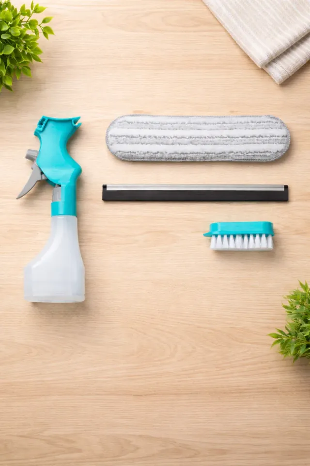 Multifunción: Incluye pulverizador de agua, rasqueta de goma, almohadilla de microfibra y cepillo de fregar.