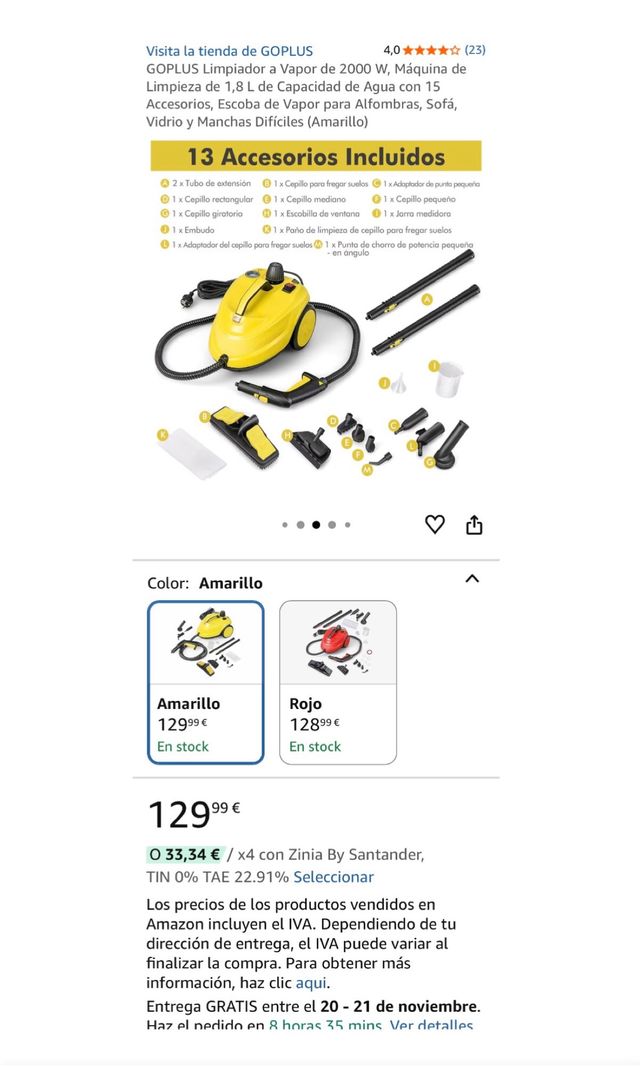 Detalles del productoLimpiador a vapor GOPLUS de 2000W en color amarillo. Incluye 15 accesorios para una limpieza profunda.