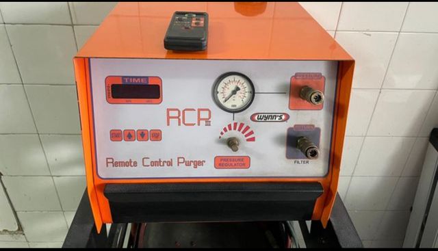 Detalles del productoEquipo para limpieza de circuito de inyección de gasolina y diésel, marca WYNN ́S modelo RCPIII, con mando a distancia, conectores y manual originales. La máquina se conecta en la entrada y salida de la bomba de infección limpiando todo el circuito. El equipo funciona a 12v conectado a la batería del vehículo. Tiene manual de instrucciones original en español.