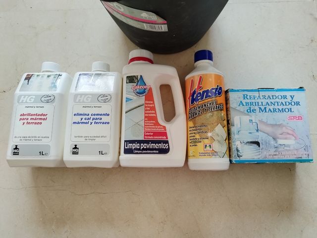 El kit incluye los limpiadores de mármol y terrazo, el cubo más un blanqueador de juntas. Precio no negociable.