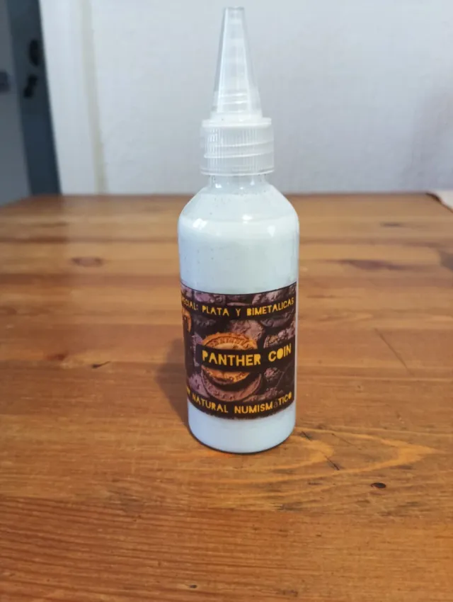 - 1 bote de producto 100x100 natural para monedas de plata y bimetalicas que son monedas de 2 euros , nada de ingredientes quimicos que ala larga estropea la moneda