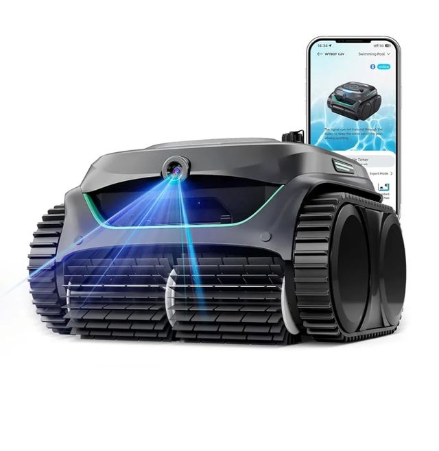 Detalles del productoWYBOT C2 Limpiafondos Piscina, Robot Limpiafondos Piscina Inalámbrico 150㎡, Doble Filtración, 3 Motores, Succión Potente, Limpieza Paredes & Línea de Agua, 180 Min, App(Negro-Verde Gris)