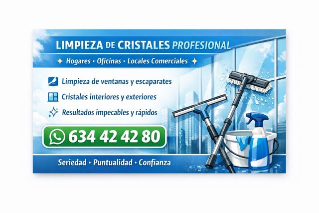 Limpieza de de todo tipo de cristales: Hogares, locales comerciales, oficinas..... presupuesto sin compromiso Seriedad y tranquilidad total