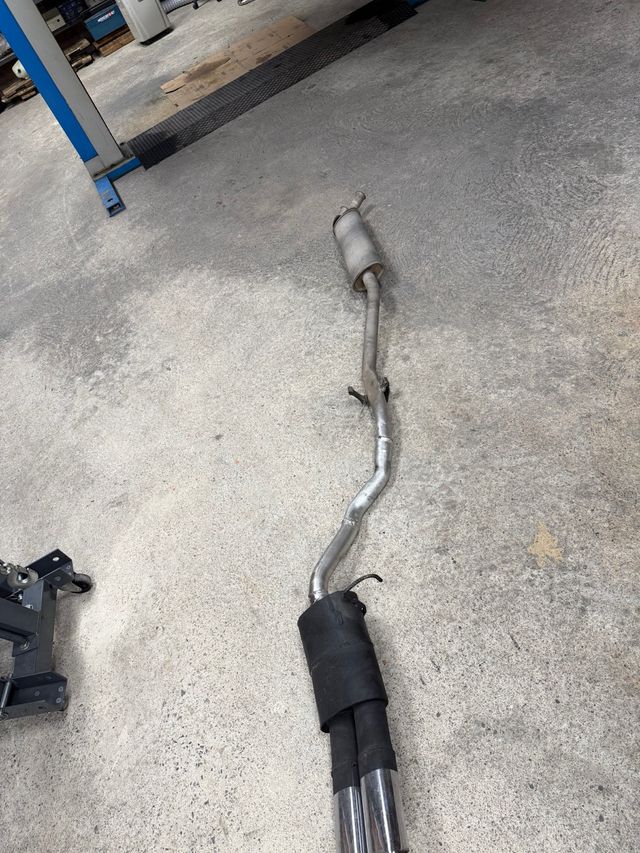 Detalles del productoLínea de escape completa para BMW E30 320i. Incluye silenciador y doble salida cromada.