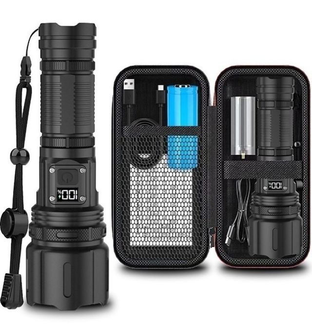 Detalles del productoLinterna LED de alta potencia 120.000 lúmenes, ideal para uso profesional, táctico o emergencias. Diseño resistente con material metálico y certificación IPX6 contra agua y polvo. Incluye 4 modos de iluminación ajustables para adaptarse a cualquier situación. Funciona con pilas recargables USB, ofreciendo autonomía y comodidad. Portátil y ligera, perfecta para camping, senderismo, pesca o seguridad.