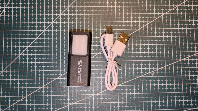 Pequeña linterna LED con clip y cable de carga USB. Linterna con 4 modos de iluminación, 17 gramos de peso, ligera a mas no poder.