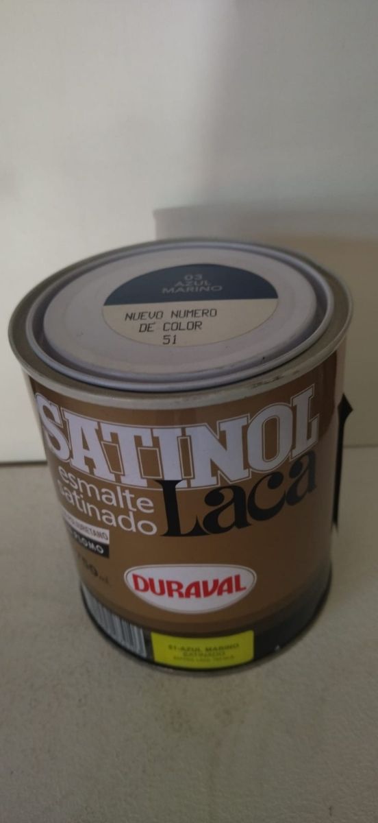 Detalles del productoSatinol, laca de poliuretano sin plomo satinado botes de 750 Ml., Color azul marino quedan 4 botes. Rojo inglés quedan 2. Color crema queda 1 .PVP por unidad