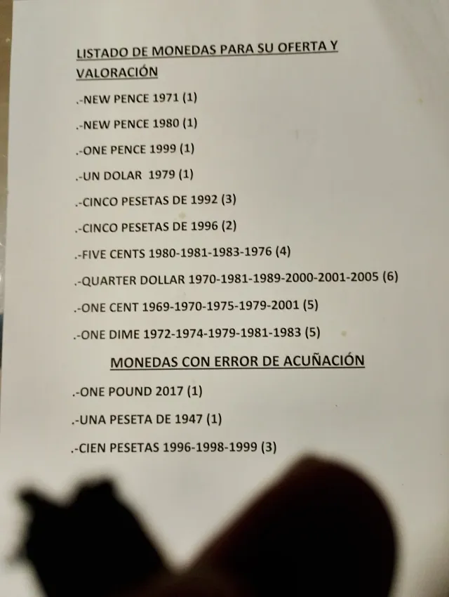 Detalles del productoColección de monedas para oferta y valoración, incluyendo piezas con y sin errores de acuñación.