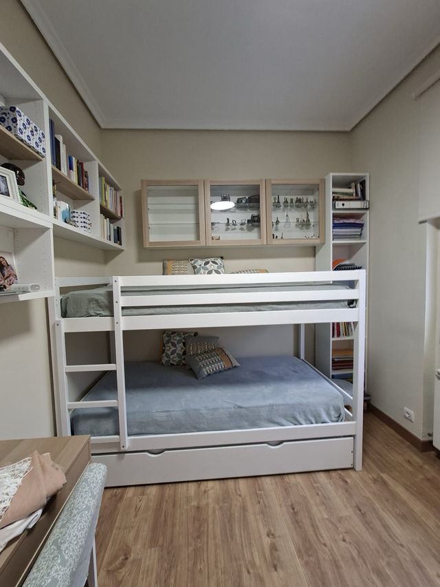 Litera blanca de madera con cama nido. - Estructura robusta y segura. - No incluye colchones.