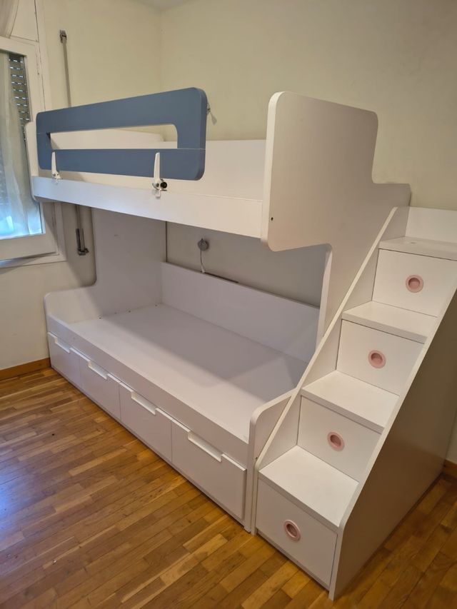 - Amplios cajones de almacenaje bajo la cama inferior.