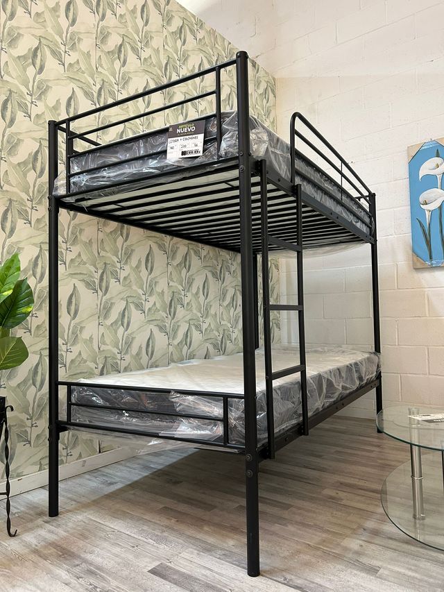 Litera Cama 90x190 Negra Metalica ¡Nueva!