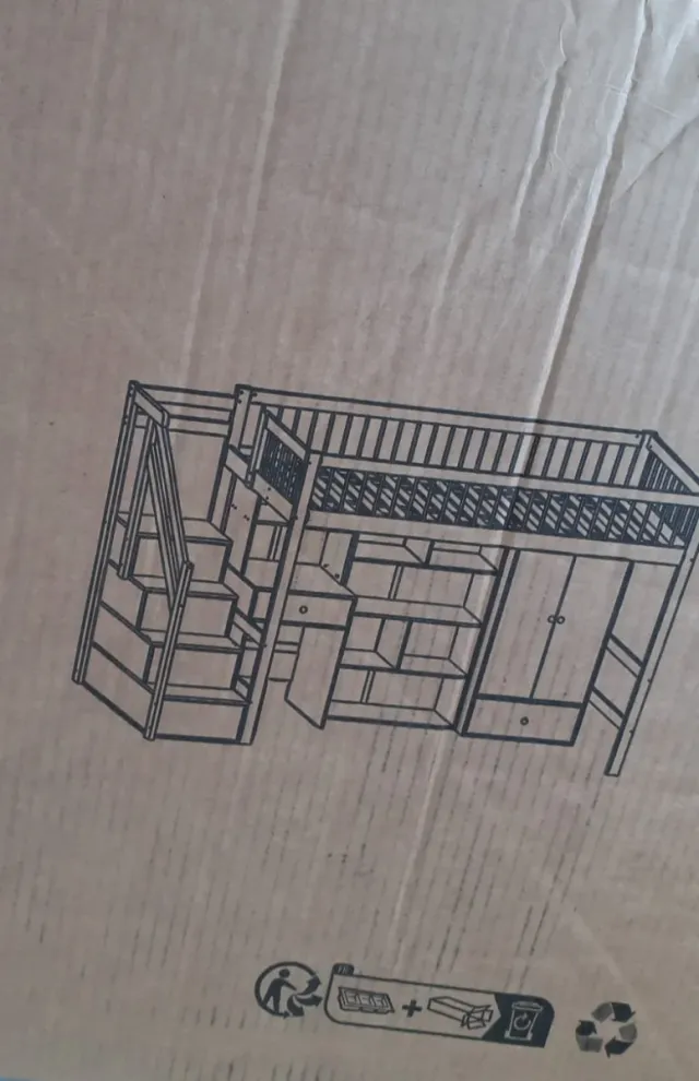 Detalles del productoLitera de madera con un diseño funcional que incluye escaleras de acceso y un armario.