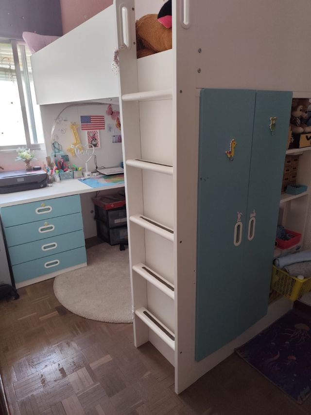 Detalles del productoCama litera juvenil con escritorio integrado y armario. Está en buen estado y es ideal para una habitación infantil o juvenil.