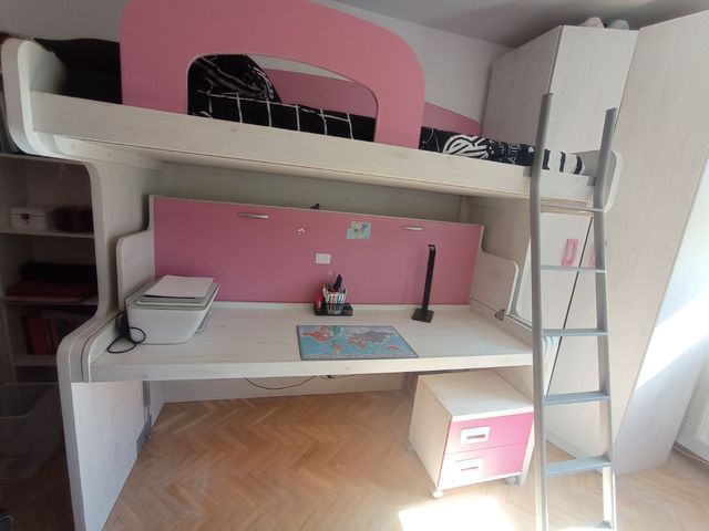 Detalles del productoCama litera juvenil con escritorio integrado y armario. Ideal para habitaciones pequeñas.