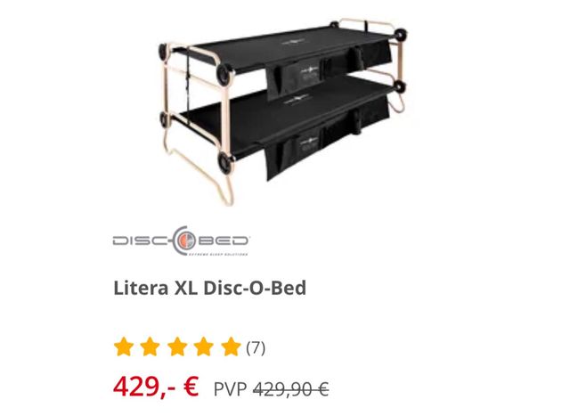 Litera plegable Disc-O-Bed XL, ideal para camping o viajes. - Color negro. - Estructura metálica. - Incluye bolsillos laterales.