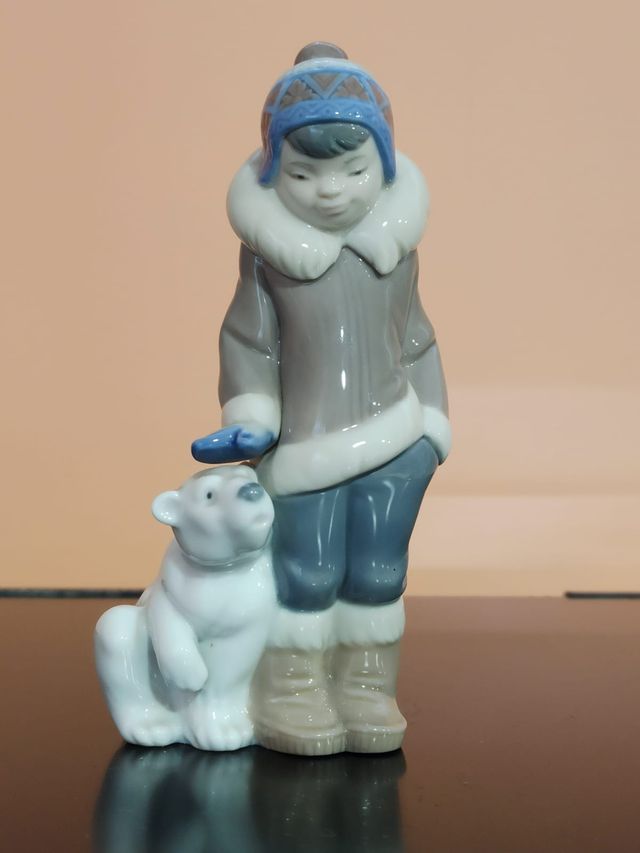 Detalles del productoMagnífica figura Niño Esquimal con Osito Polar de Mascota, de porcelana Lladró 5238.