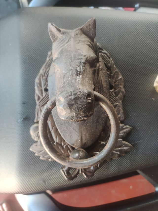 Detalles del productoPreciosa pieza decorativa para tu puerta. Es un llamador de puerta con forma de cabeza de caballo, hecho de metal.