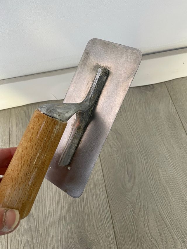 Herramienta clásica de albañilería para aplicar y alisar materiales. - Hoja de metal. - Mango de madera.