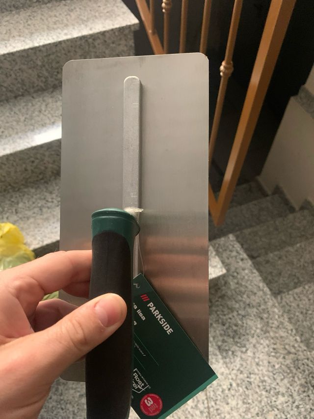 Llana de la marca Parkside, ideal para trabajos de albañilería. Nueva sim estrenar. - Mango ergonómico de goma. - Hoja de acero inoxidable.